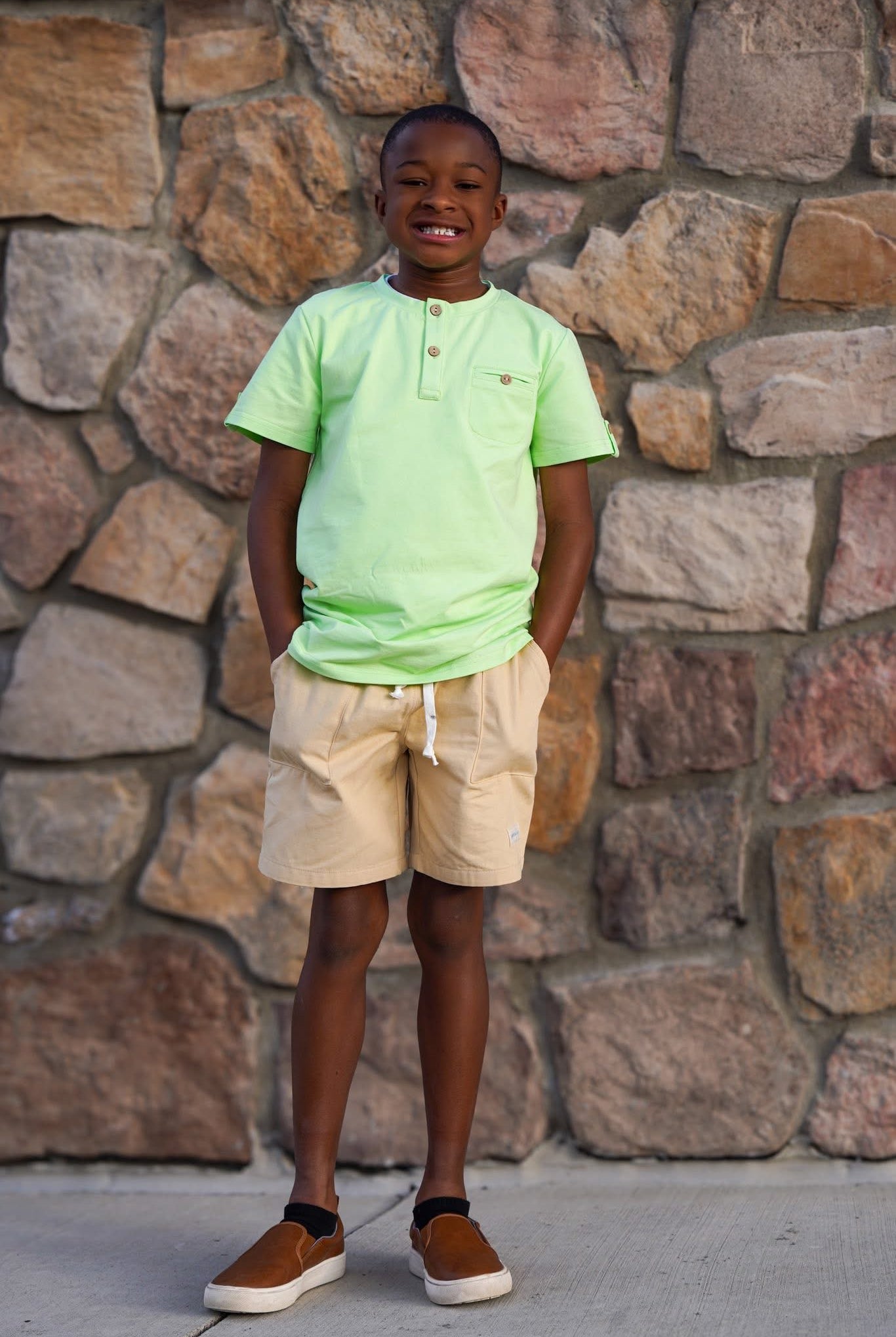 We fell in love with the fit and quality of the clothing. Now, it has become part of his every day wear. He loves how comfortable the shirts are. I love how they wash and still look the same as when they were first purchased. I also love how they match a lot of his sister's clothing.