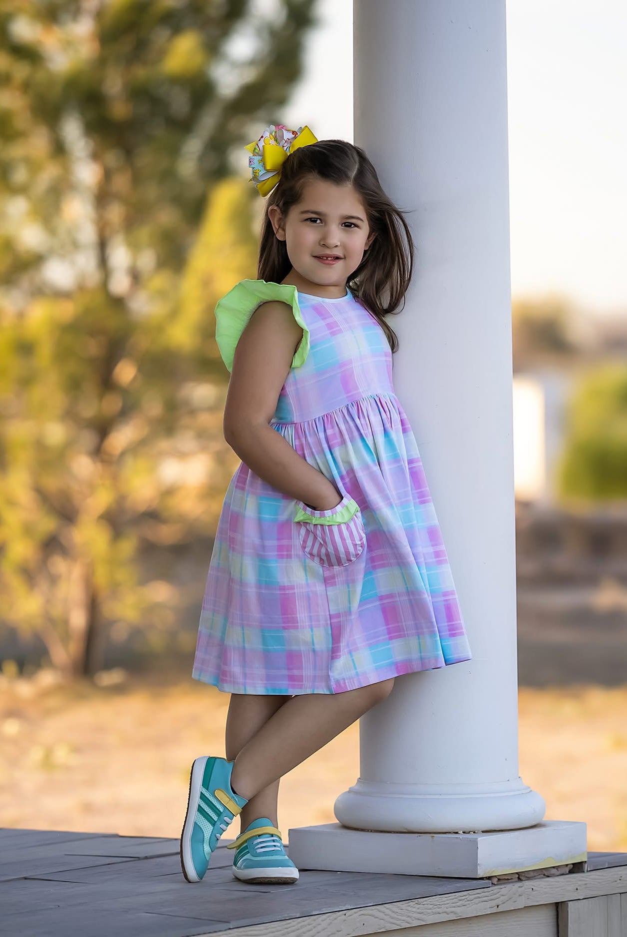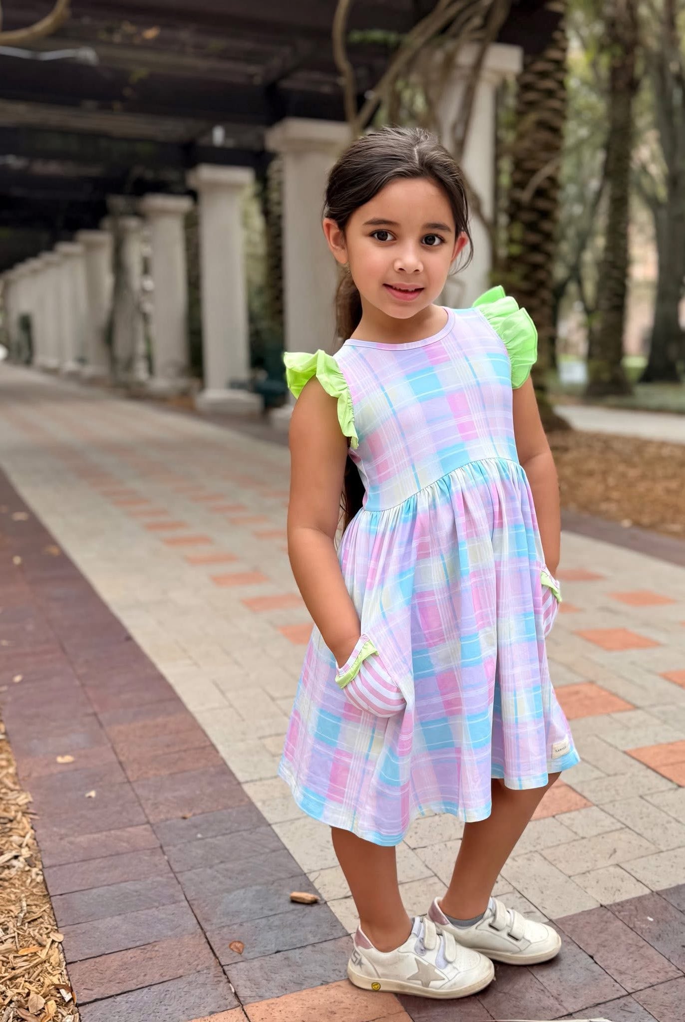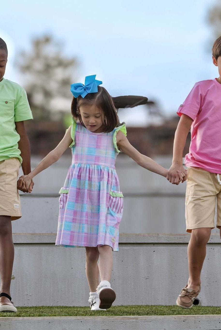 Pretty Plaid Flutter Sleeve Dress