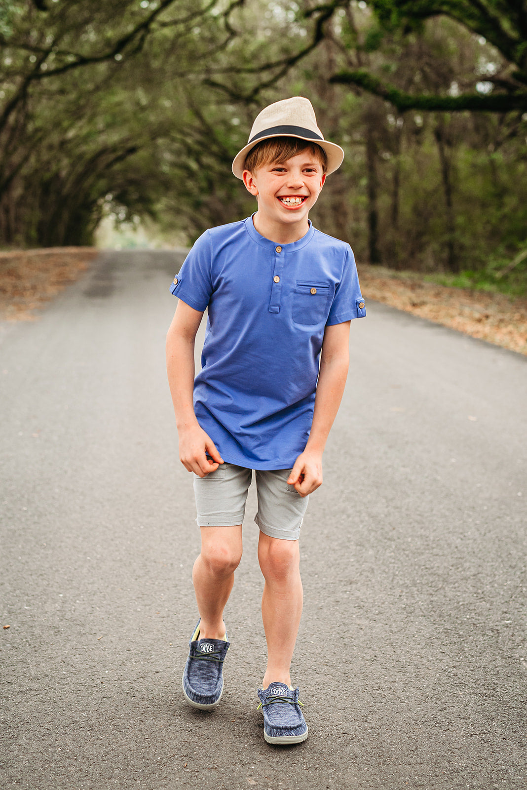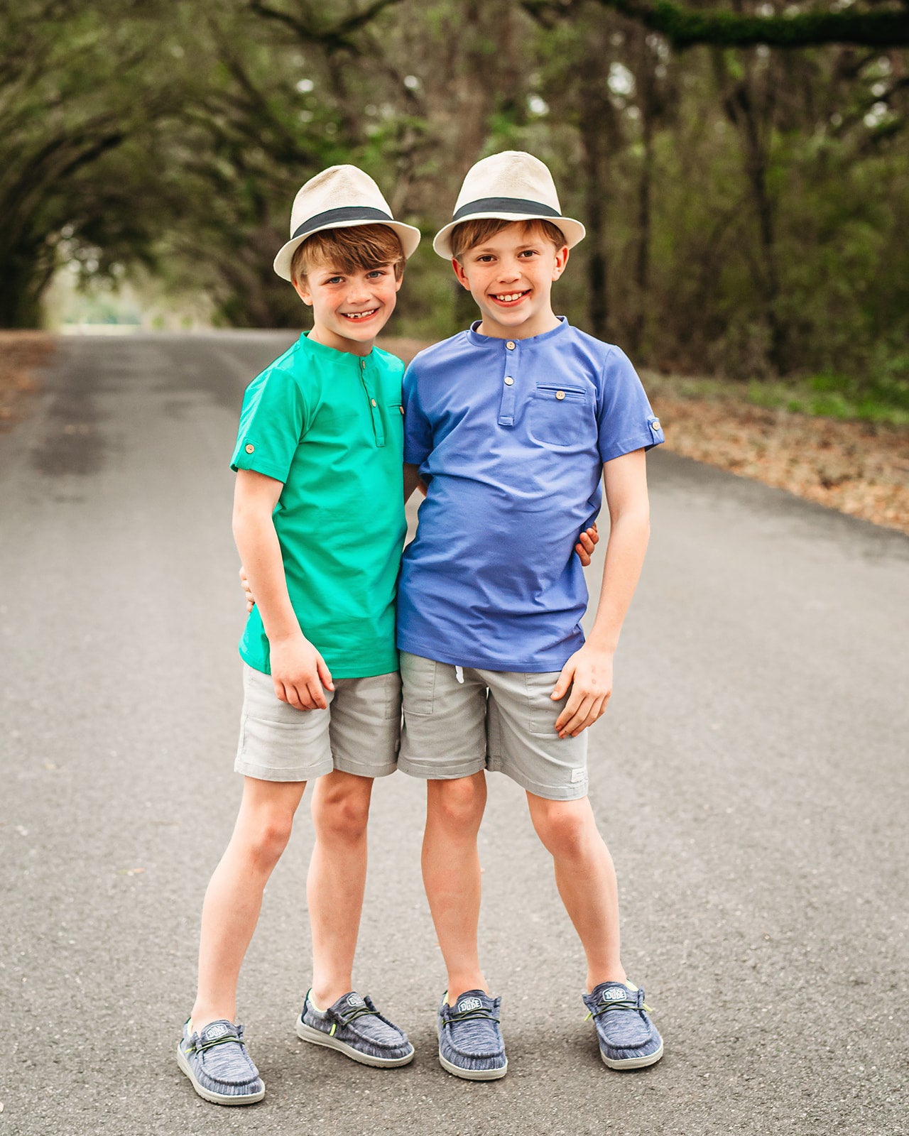 The perfect bright blue-violet to kick start the warmer months! Looks great paired with our Big Wave Blue Adventure Swim Shorts or our Take-A-Hike shorts. These soft shirts have a classic look and are also sensory friendly. Our tab tees are comfy enough to play, but handsome enough for church or out to dinner!