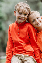 Our Rustwood (red-orange) Pullover is a classic closet staple, perfect to take you from fall through winter. Dress it up or down, your boys will look put together yet feel so comfy!