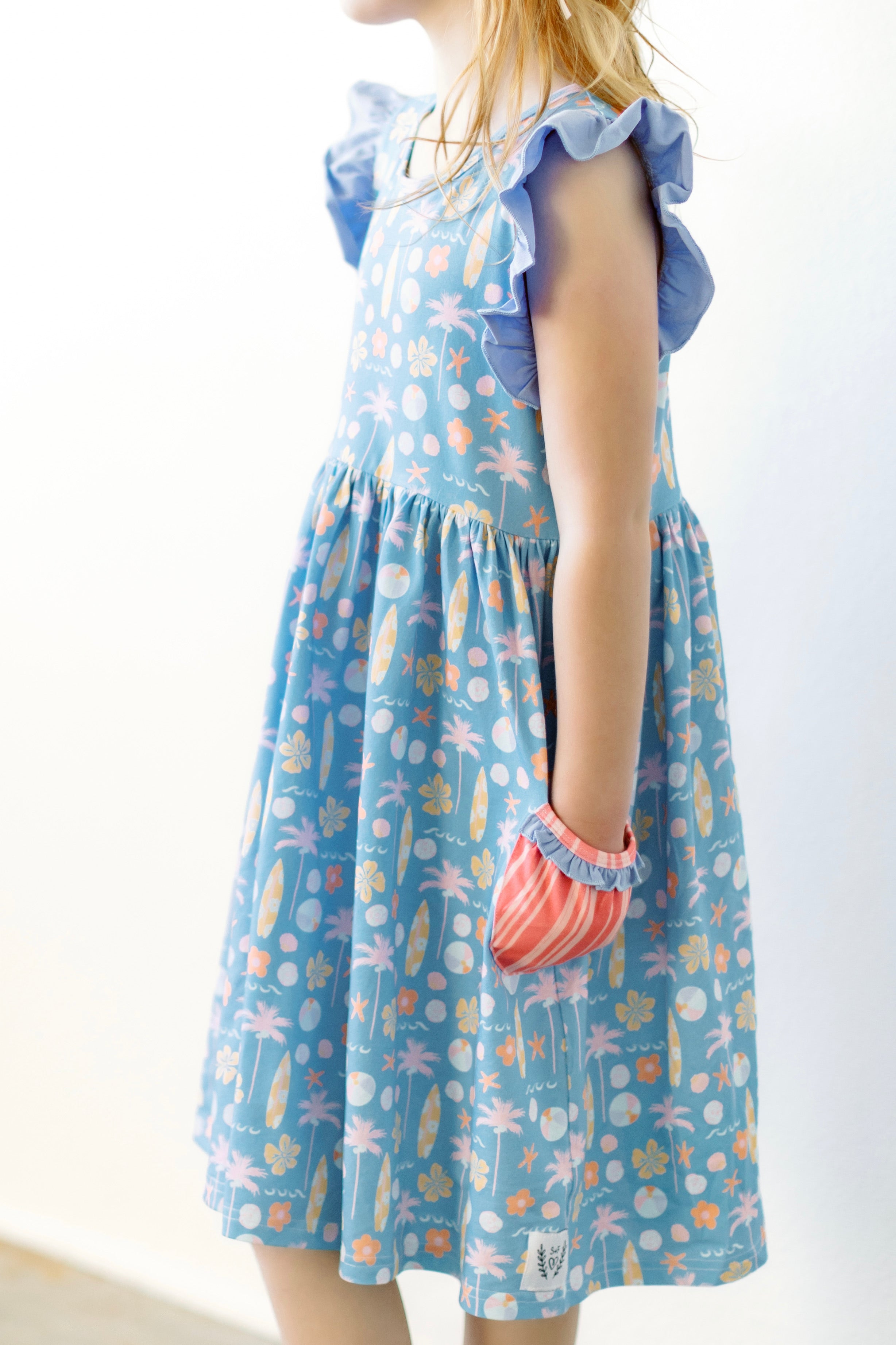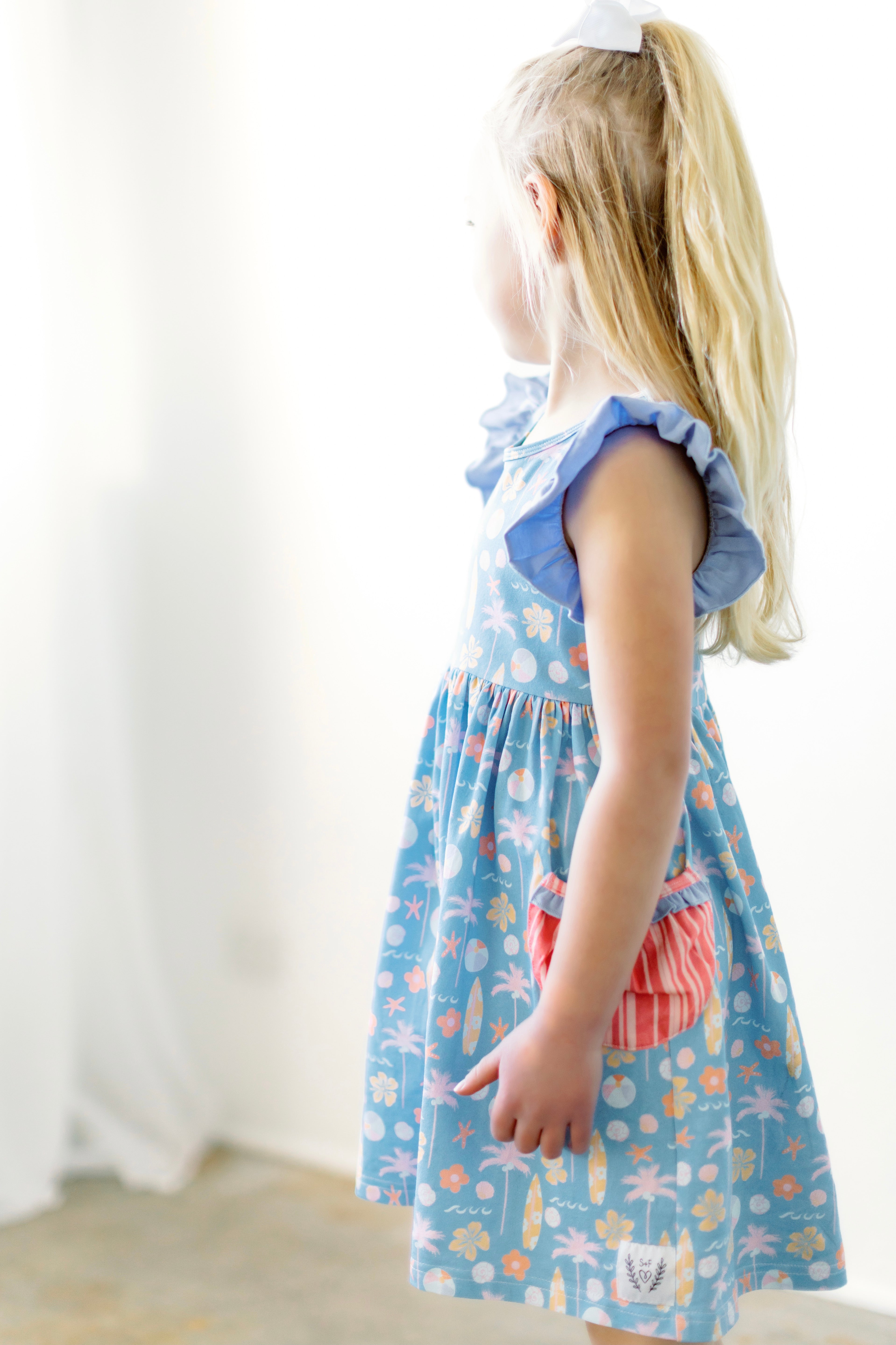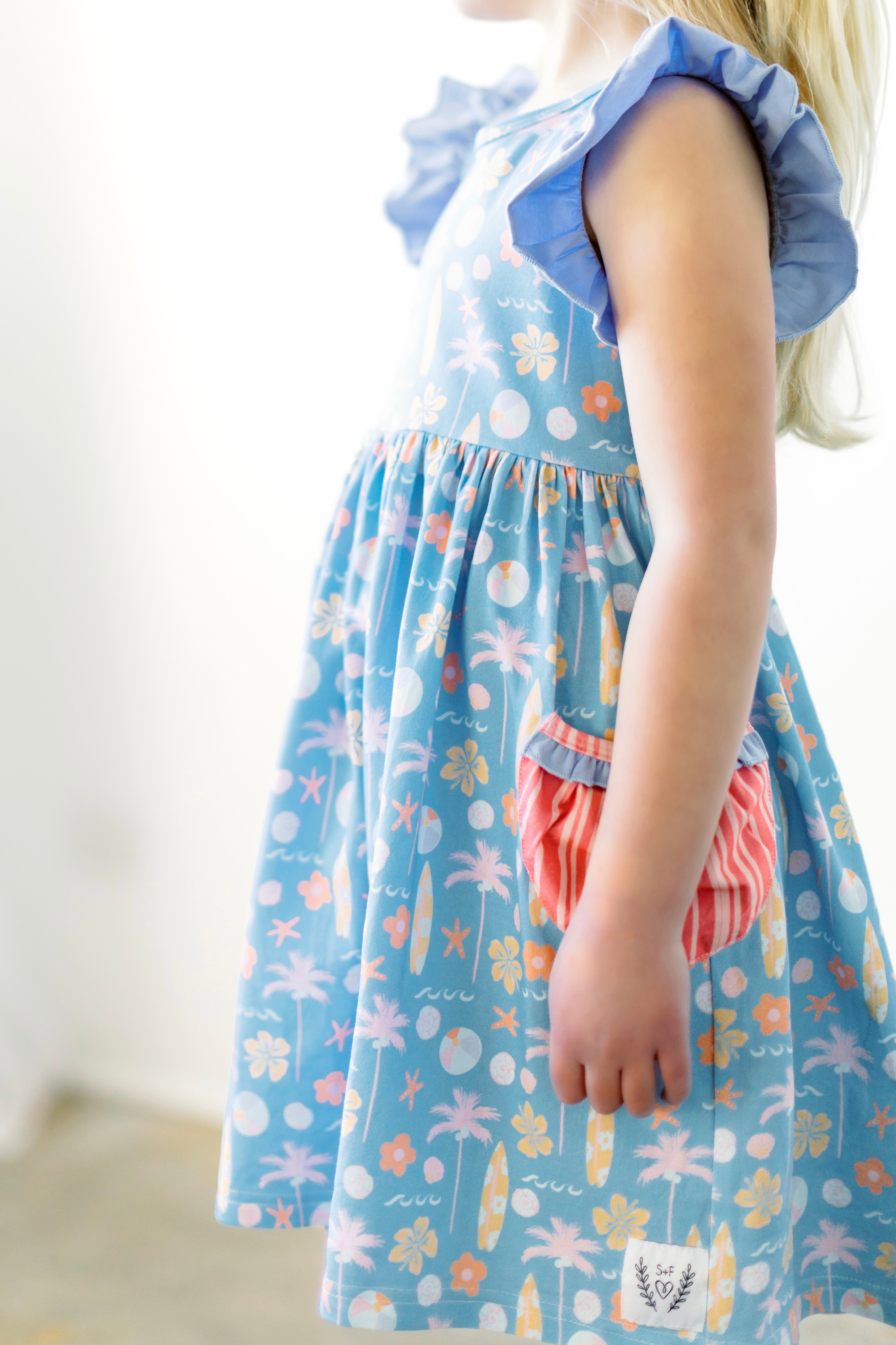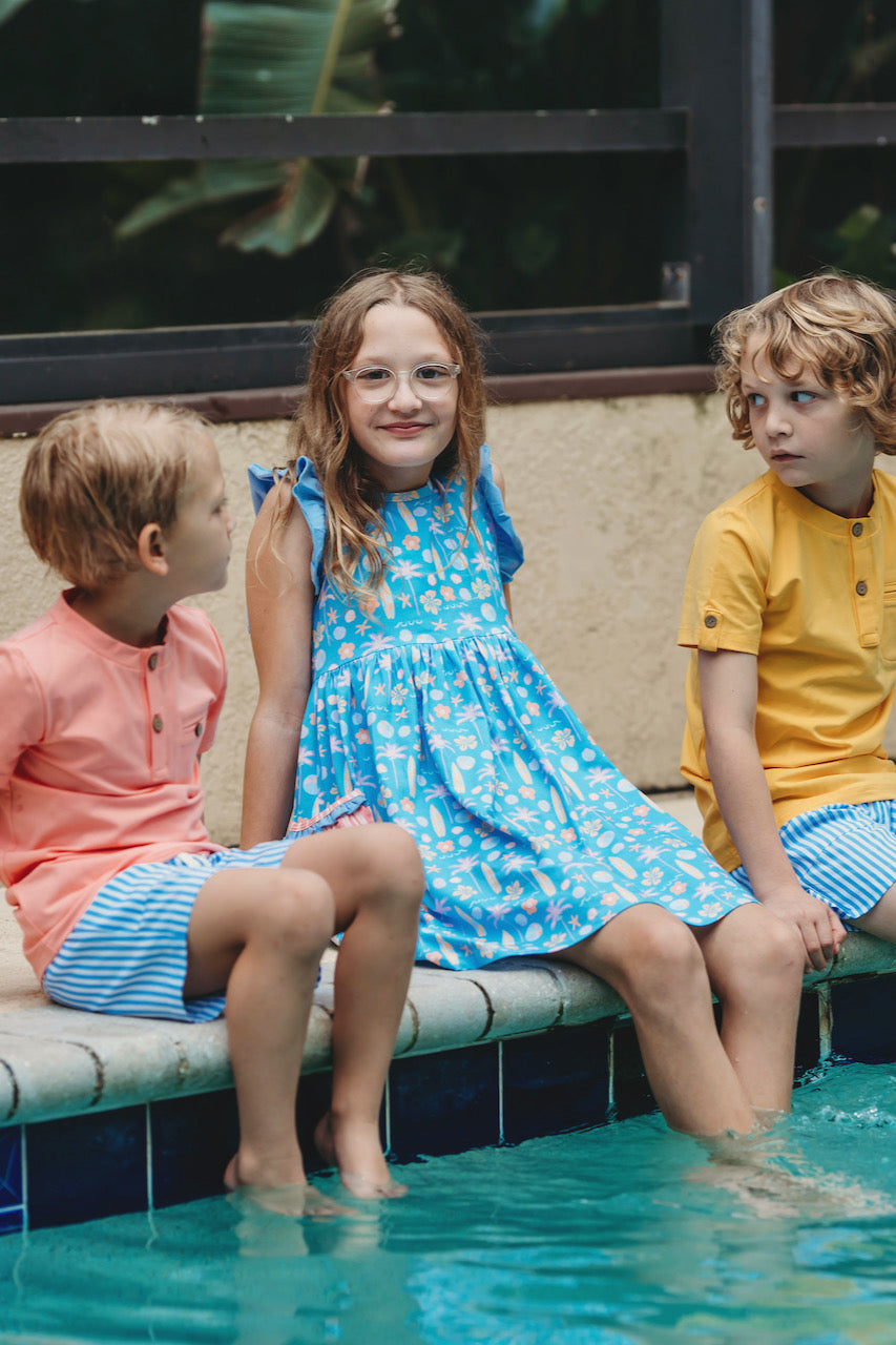 A happy + playful collection of summer favorites! Tab Tees, swim shorts, and dresses!