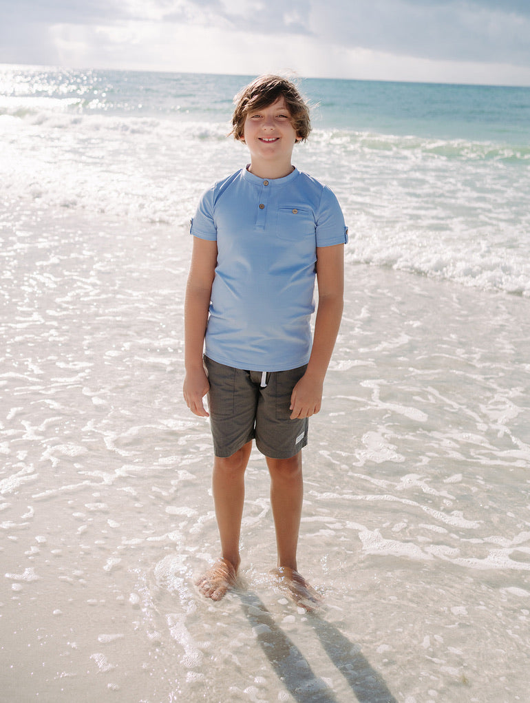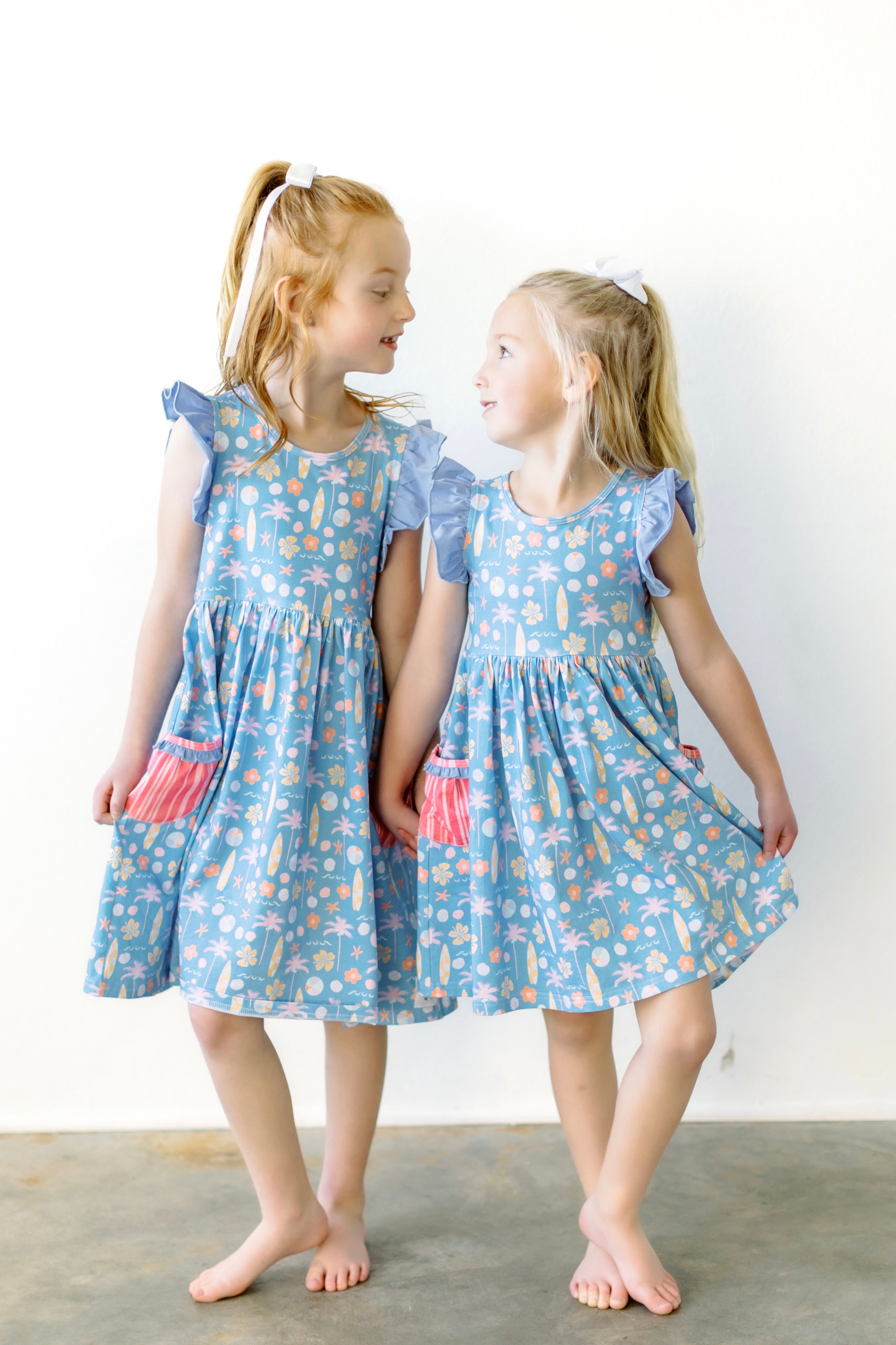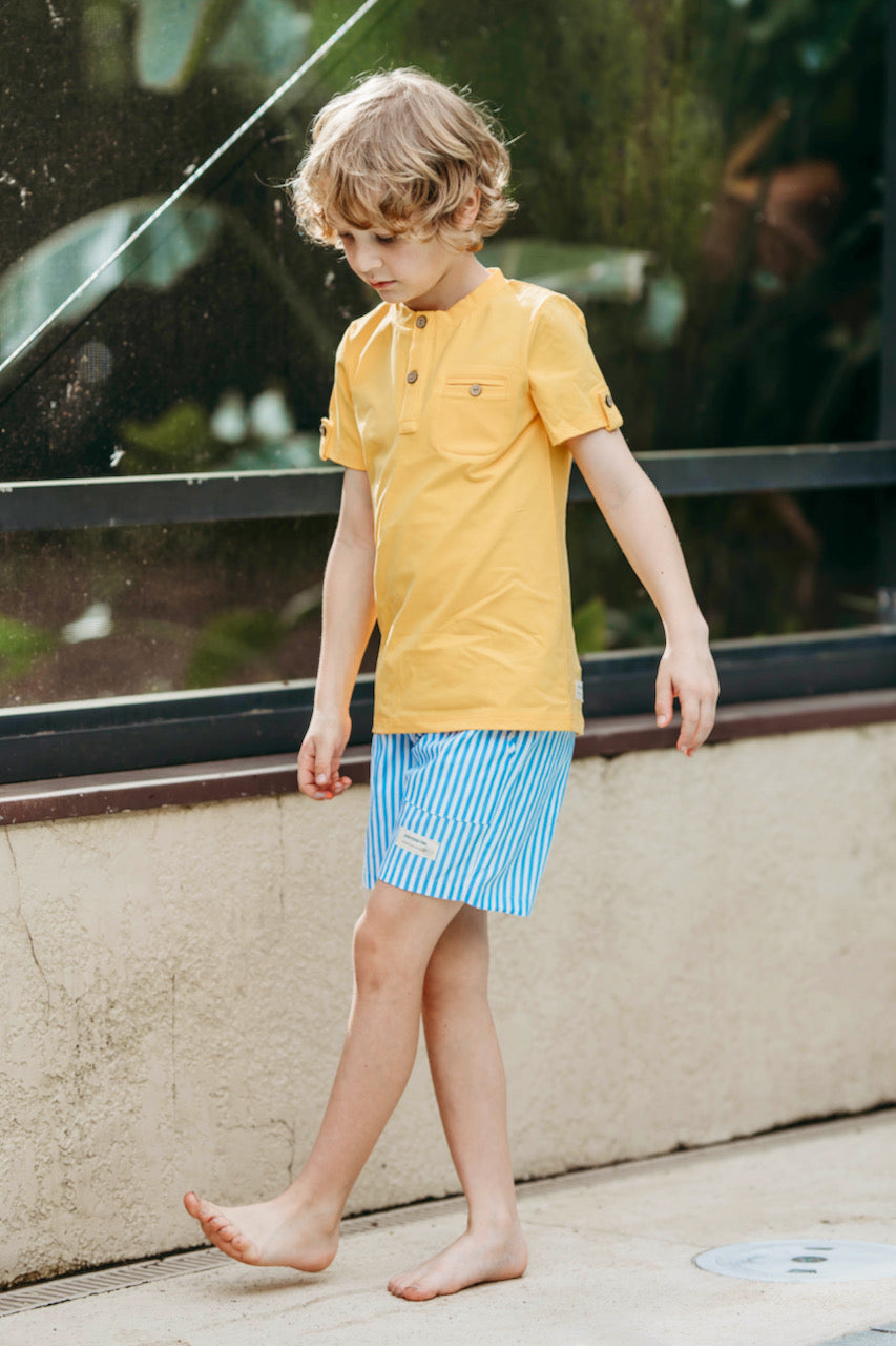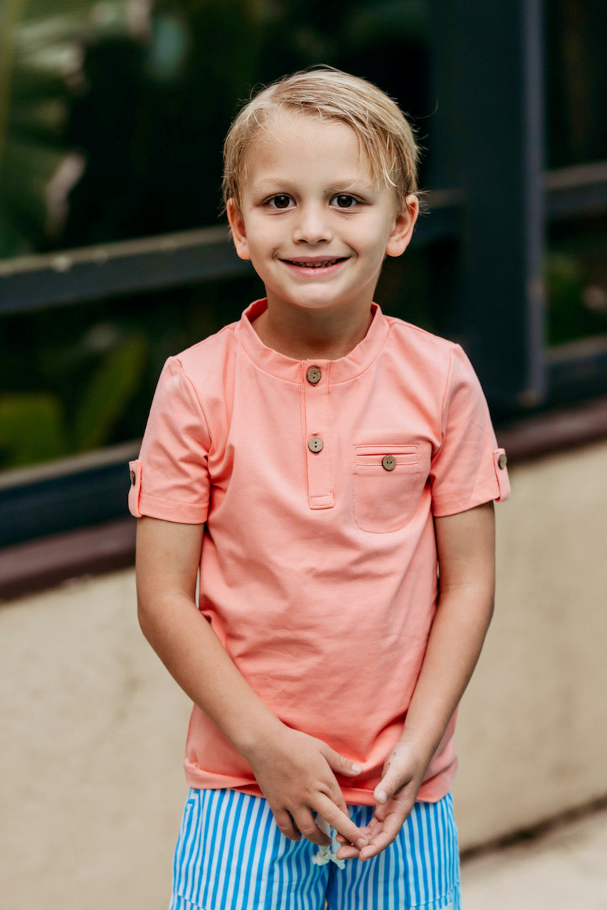 A happy + playful collection of summer favorites! Tab Tees, swim shorts, and dresses!