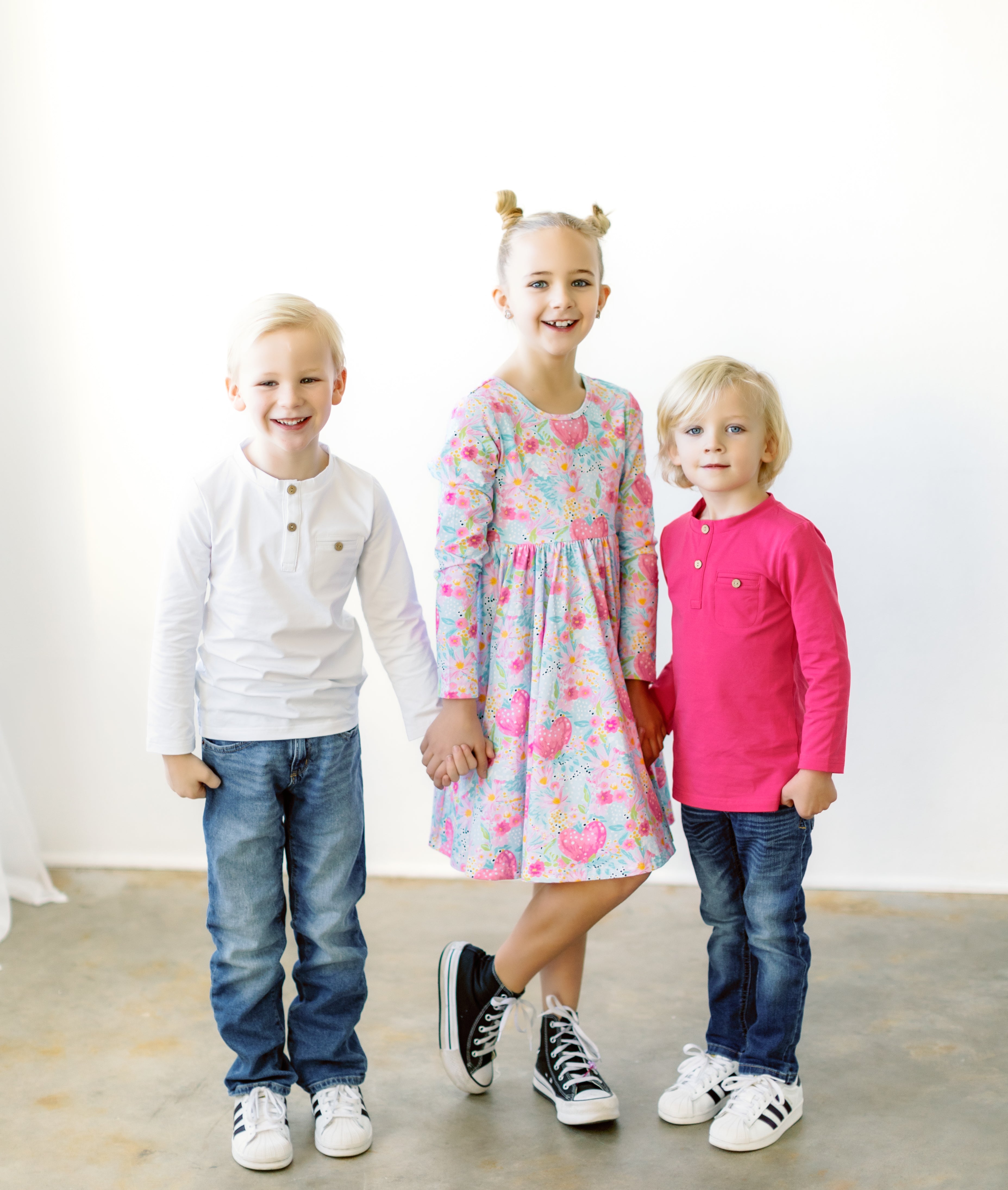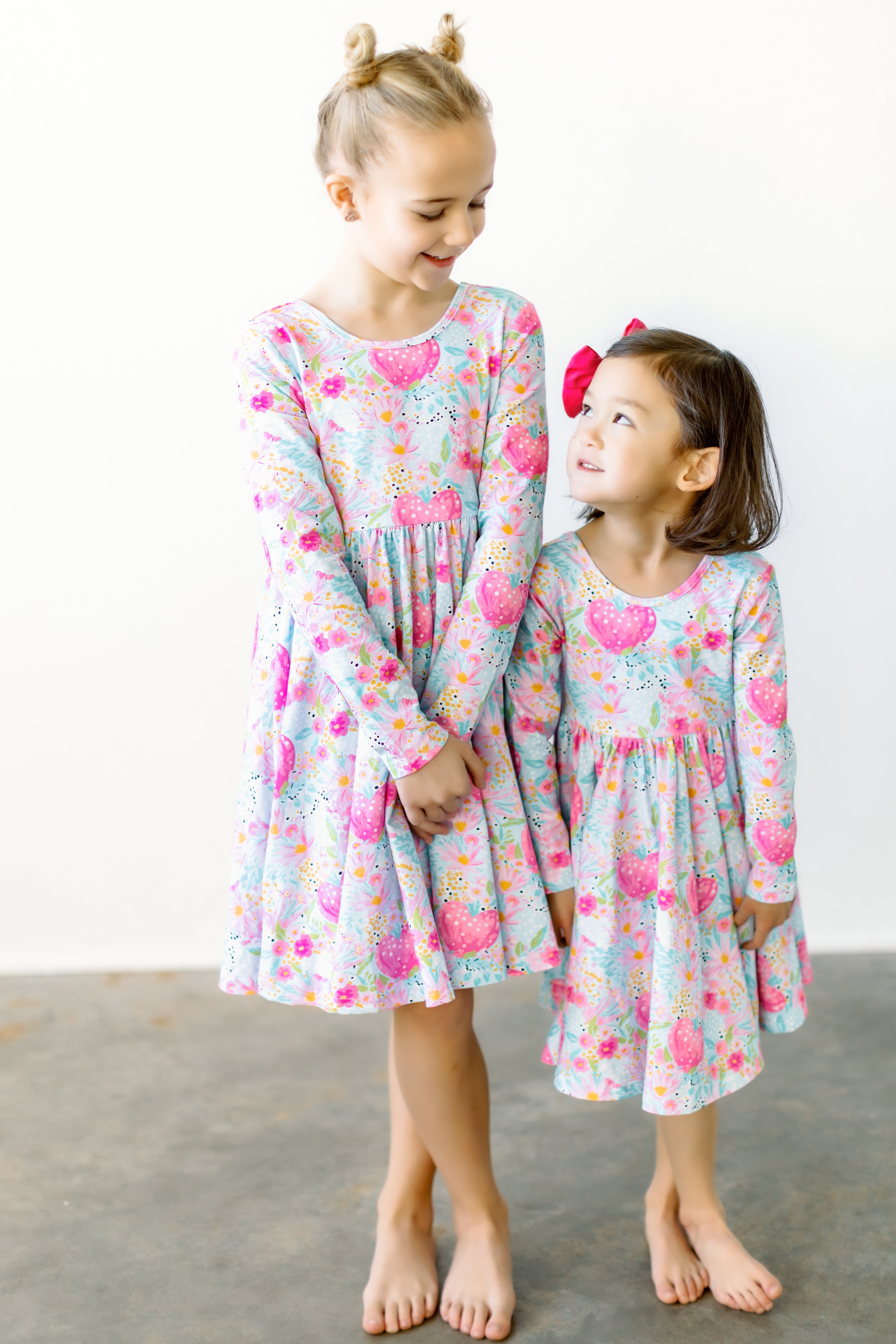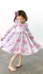 Mamas, this festive and fun dress is perfect for your girl! It has super soft heart and floral print fabric with double lining at the top for extra coverage. Plus, its scoop back, pockets, long sleeves, and full twirl skirt make it oh-so-chic! It also happens to look especially great with the boys pieces from our Valentine's collection. <3