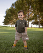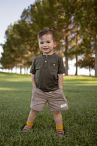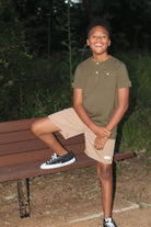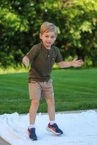 The perfect deep olive shade to kick off the school year! Looks great paired with any of our Take-A-Hike shorts. These soft shirts have a classic look and are also sensory friendly. Our tab tees are comfy enough to play, but handsome enough for church or out to dinner!
