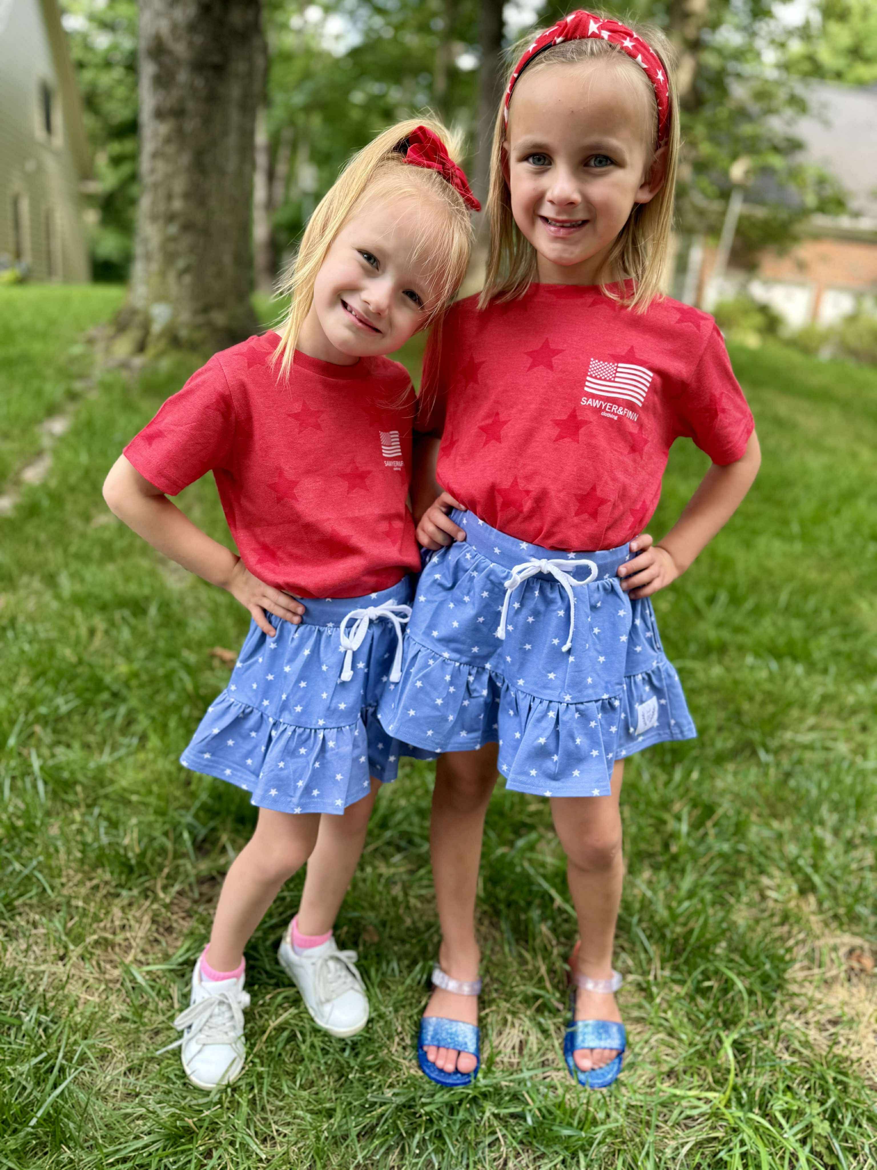 This patriotic version features a front chest graphic and back main graphic with an American vibe! Available in three fun colors.